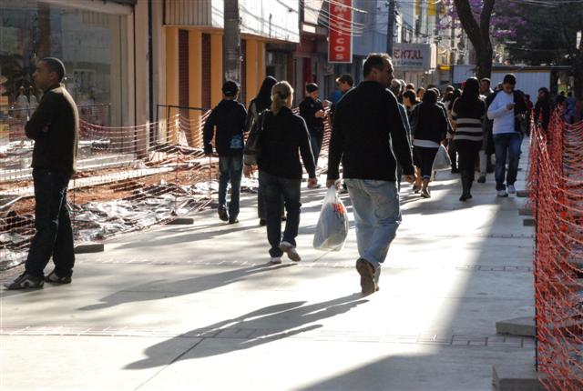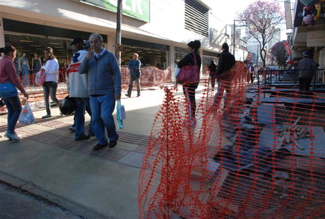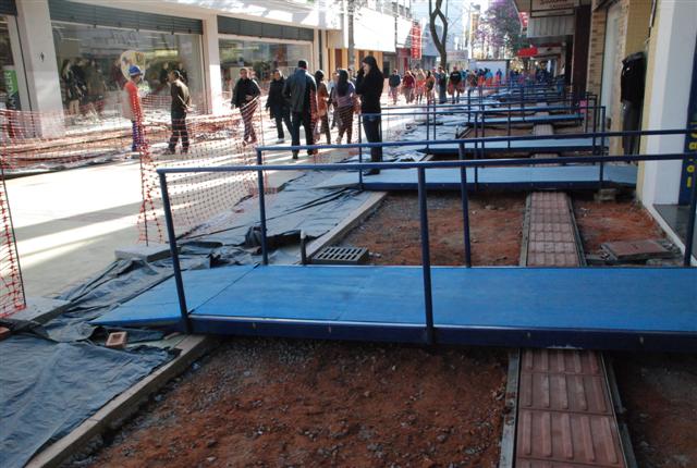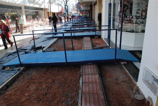 “Antes o Calçadão era composto por pedras portuguesas irregulares que dificultavam o trânsito de pedestres no local. Com isso, pensamos numa maneira de colocar o concreto aparente e liso, sem pequenas pedras que pudessem se soltar para a pessoa tropeçar e cair”, explica Alcântara. De acordo com o proprietário e engenheiro da Tucano's, Marcos Aurélio Cesco, com a conclusão da concretagem do trecho central do Calçadão, as equipes iniciaram e já concluíram nesta segunda-feira (27/06) a colocação do piso tátil nas laterais do primeiro quarteirão. “O piso tátil deve direcionar o deficiente para realizar o percurso com segurança”, comenta. Segundo Cesco, outra etapa que envolve a concretagem final das laterais deve ocorrer entre terça e quarta-feira desta semana, se o tempo de chuva não prejudicar os serviços.
