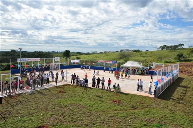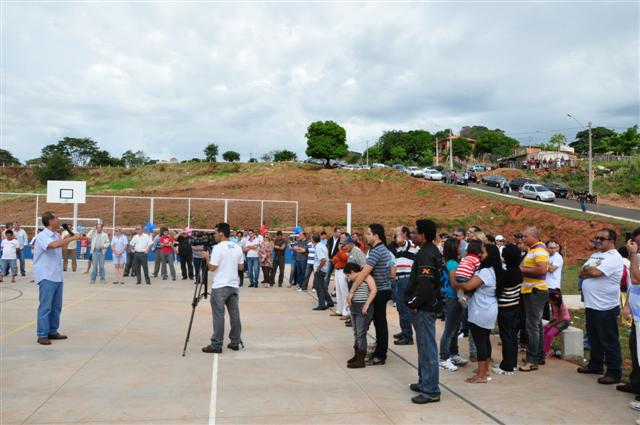 Compromisso assumido, compromisso cumprido. Seguindo o lema de sua administração, o prefeito Milton Carlos de Mello ‘Tupã (PTB), acompanhado do vice-prefeito Marcos Vinha (PT), inaugurou na manhã de ontem (27/05) a quadra poliesportiva do Vale das Parreiras. Na oportunidade, o chefe do Executivo anunciou também outras melhorias para a zona norte de Presidente Prudente. “Através de requerimento do vereador Bosquet [Oswaldo – PSB], no valor de R$ 200 mil, feito ao deputado estadual Ed Thomas, até o final deste ano vamos fazer a cobertura dessa quadra. Outra melhoria é o recapeamento asfáltico nos três bairros da zona norte”, comenta, se referindo ao Vale das Parreiras e vilas Angélica e Operária.