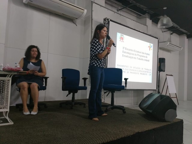 Prudente apresenta como Boas Práticas o “Diagnóstico da Situação de Trabalho Infantil das Crianças e Adolescentes do município de Prudente”, explanado pela assessora da SAS, Maria Helena Veiga Silvestre e a coordenadora do Creas, Elaine Cristina Dias Spiguel.