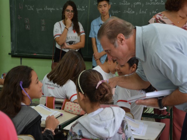 Além de visitar as escolas e ouvir as demandas, o chefe do Executivo, juntamente ao prefeito e vice-prefeita mirins, entregou a premiação do Projeto ‘Boas Práticas Pedagógicas’ à Escola Municipal Giseli Dalefi, cuja iniciativa intitulada ‘Alimentação Saudável’, coordenada pela professora Veruska Zampieri, foi a vencedora na categoria ‘Ensino Fundamental’.