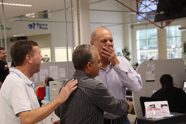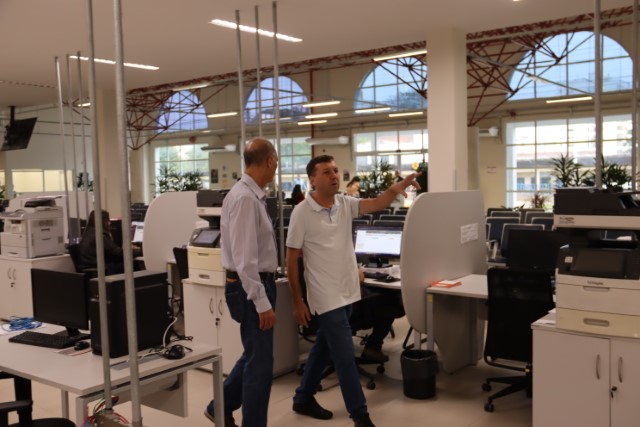 O prefeito de Presidente Prudente, Milton Carlos de Mello - Tupã, acompanhado do secretário Municipal de Planejamento e Habitação (Seplan), Laércio Alcântara, e do secretário Municipal de Finanças (Sefin), Cadmo Garcia, visitaram as dependências do Atende Prudente na manhã desta quarta-feira (28/05).