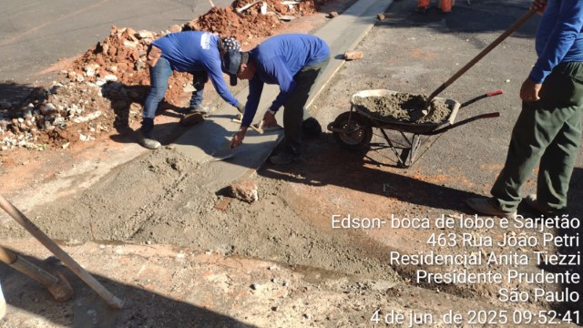 A Secretaria Municipal de Obras e Serviços Públicos (Sosp) executou a concretagem de uma valeta, conhecida como “sarjetão” na Rua João Petri, Residencial Anita Tiezzi. As equipes da Sosp estão concluindo a parte de limpeza do sarjetão e os serviços estarão finalizados a partir desta sexta-feira (06/06).
