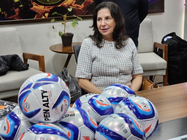 Também foram apresentados os kits esportivos destinados às escolinhas de formação, incluindo bolas de futebol e futsal, redes de vôlei, cones, coletes, entre outros materiais.