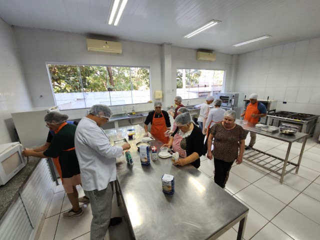 Nesta segunda-feira (21/07), os inscritos iniciaram as atividades práticas do curso. A aula teve início com as orientações sobre como higienizar o ambiente, a escolha dos melhores ingredientes e a organização de todas as etapas antes de colocar, literalmente, a mão na massa. Cabe lembrar que, na semana passada, eles passaram pelas aulas teóricas, que incluíram aprendizados sobre como comercializar seus produtos.
