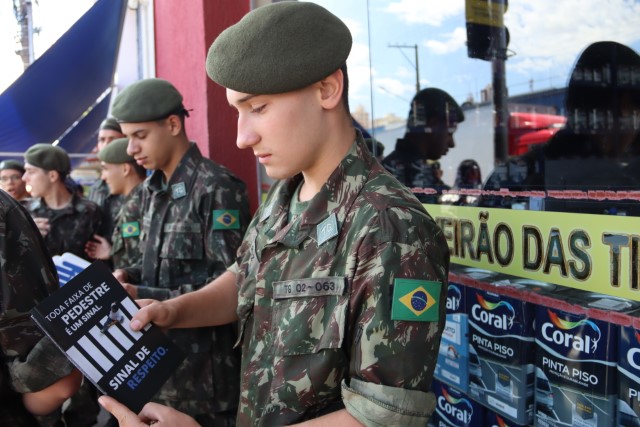 A atividade integra a programação da Semana Nacional de Trânsito e foi realizada em um dos pontos mais movimentados da cidade, marcado pelo intenso fluxo de pedestres e veículos.