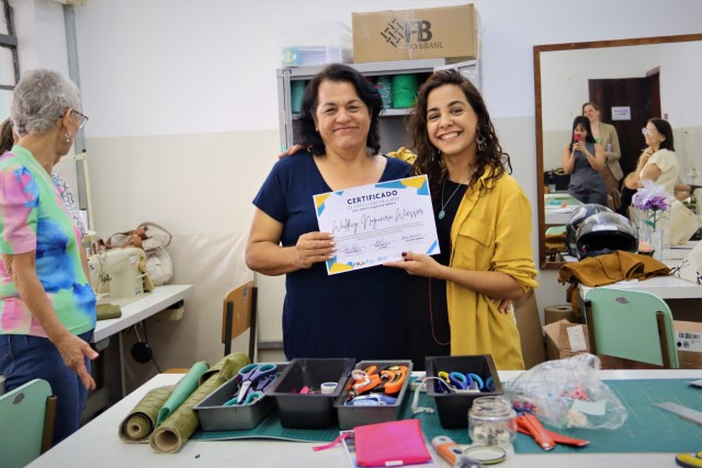 Entre as formandas, Luciana Bacarin, 50 anos, e Waldecir Nogueira Vilione, 63 anos, já planejam vender seus produtos nas feiras de artesanato da cidade. Ambas também participaram de outros cursos gratuitos oferecidos pela instituição, como Modelagem e Costura Criativa.