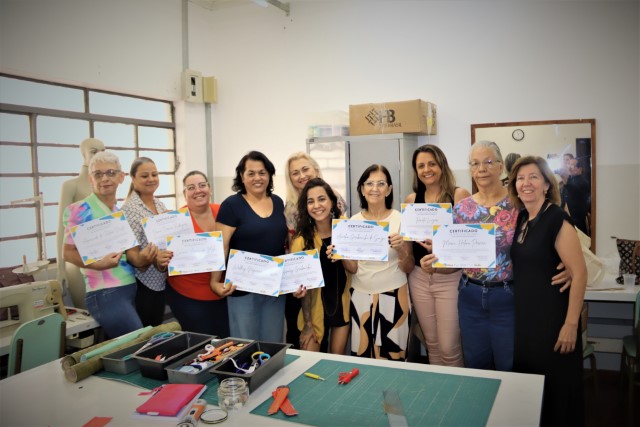 O Fundo Social de Presidente Prudente realizou, na manhã desta segunda-feira (29/09), a formatura da primeira turma do curso de Costura Vegana. Oito alunos concluíram as aulas e receberam certificados, além de levarem para casa os itens produzidos durante o curso: uma bolsa confeccionada em couro vegano e uma nécessaire.