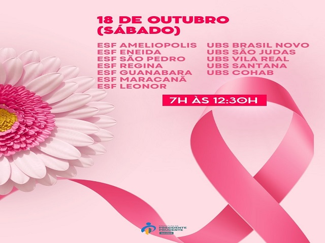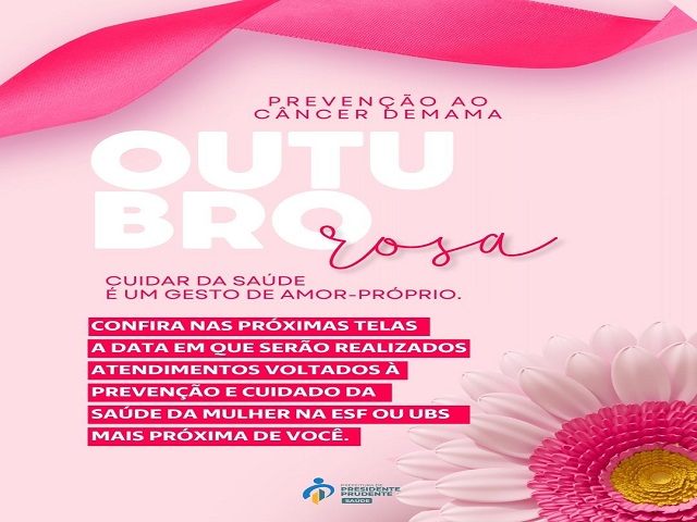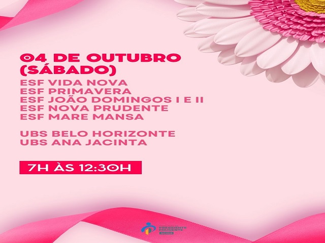 A Prefeitura de Presidente Prudente, por meio da Secretaria Municipal de Saúde (Sesau), anuncia três mutirões de saúde da mulher para marcar a Campanha Outubro Rosa de 2025, mês que celebra o movimento internacional de conscientização e prevenção ao câncer de mama.