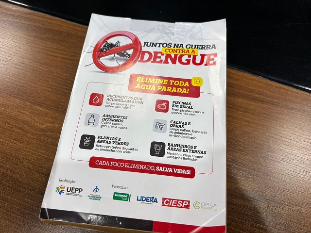 A Prefeitura de Presidente Prudente e a UEPP, com a parceria da Unimed, Ciesp e Grupo Lidera, lançaram nesta sexta-feira (03/10), no Gabinete do Paço, o programa “Lutando juntos contra a dengue”.