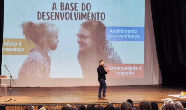 O evento contou com um bate-papo com o terapeuta comportamental, Kayky Ferreira, que abordou reflexões sobre o papel do afeto no desenvolvimento das crianças.