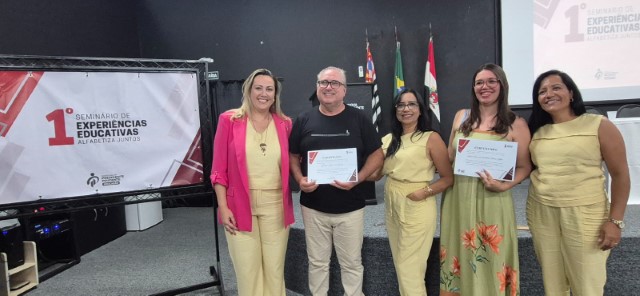 Como forma de reconhecimento, as profissionais premiadas receberam menção honrosa e a obra da autora Magda Soares, referência nacional na área da alfabetização. A cerimônia também contou com a entrega de certificados a todos os professores e diretores inscritos, além de homenagens aos representantes da Secretaria Municipal de Educação e da Secretaria de Educação do Estado de São Paulo – Diretoria Regional de Presidente Prudente, responsáveis pela condução do Programa Alfabetiza Juntos – SP no município.