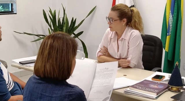 Professora Bebel também esteve na Secretaria Municipal de Saúde (Sesau), onde foi recebida pela secretária Adriana Vitório, pasta que recebeu R$ 100 mil de emenda da parlamentar, recurso utilizado para a compra de medicamentos.