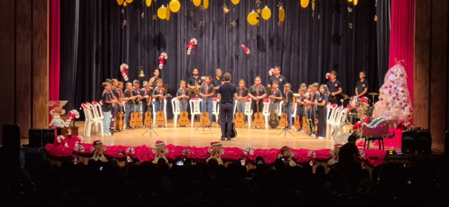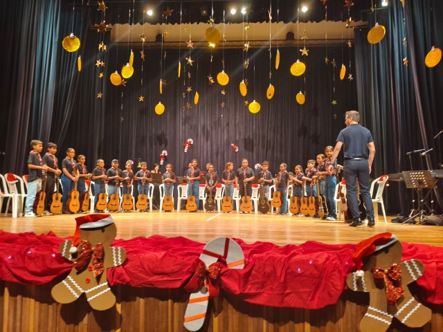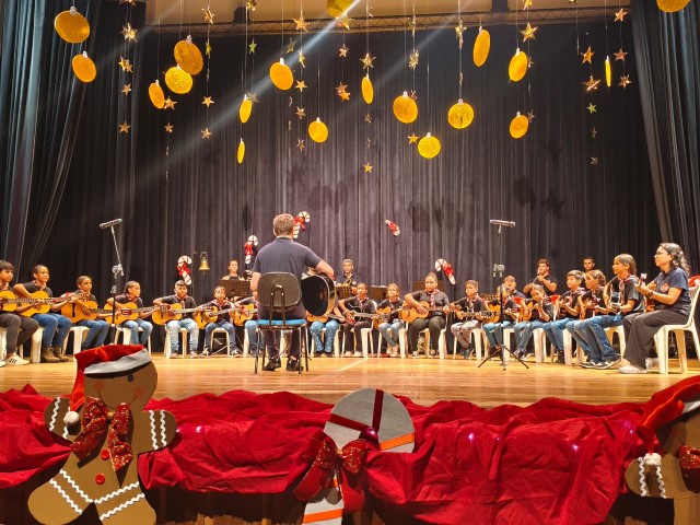 As performances incluíram dança, artes circenses, inglês, canto, flauta, escaleta, violão e outros instrumentos, evidenciando o trabalho diversificado desenvolvido nas oficinas do programa. Cada apresentação trouxe ao palco o aprendizado, o dinamismo e o encantamento, que marcam a proposta pedagógica do Cidadescola, reforçando seu compromisso com a formação integral das crianças.