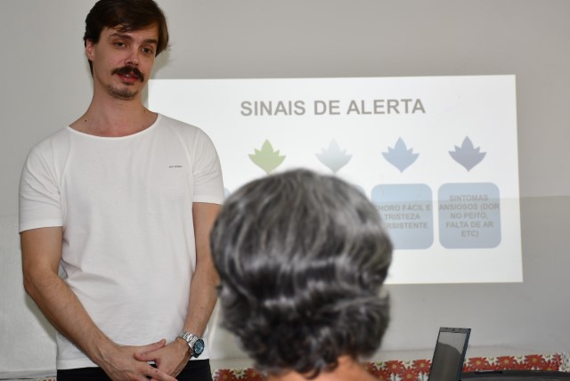 O psicólogo Thiago Peixoto também apresentou aos participantes os caminhos de acesso à rede de atendimento em saúde mental, destacando a importância de procurar ajuda na atenção básica, por meio das Unidades Básicas de Saúde (UBS) e Estratégias de Saúde da Família (ESF); nos serviços de urgência e emergência, como as UPAs e o atendimento pelo telefone 192; e na atenção especializada, por meio dos Centros de Atenção Psicossocial (CAPS).