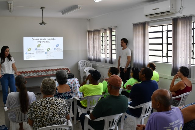 Na sequência, os profissionais ministraram uma palestra educativa abordando o tema Janeiro Branco, suas origens, objetivos e a relevância de cuidar da saúde mental de forma contínua, reforçando que o bem-estar emocional deve ser uma prioridade ao longo de todo o ano.