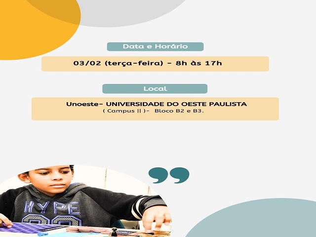 Na terça (3), no Campus II da Unoeste, acontece o segundo dia do Seminário, que vai abordar o acompanhamento do estudante da educação especial, por meio de uma formação simultânea que vai dividir os participantes em cinco grupos, coordenados pela equipe de especialistas da Seduc.