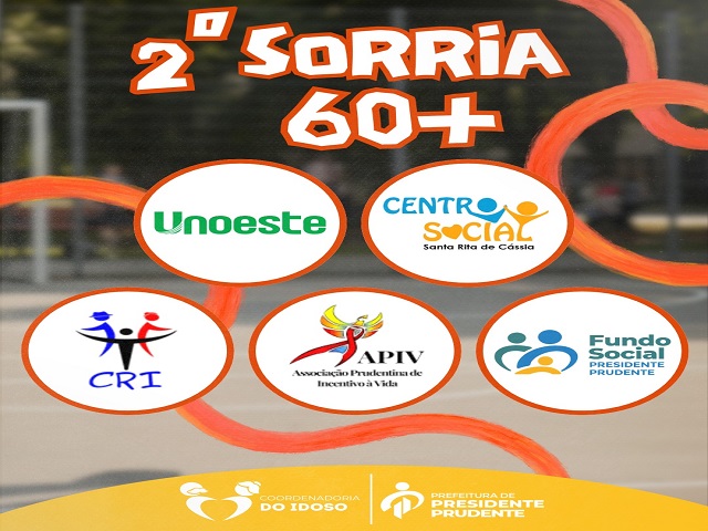 A Coordenadoria Municipal do Idoso de Presidente Prudente anuncia a 2ª edição do Sorria 60+, que vai acontecer no dia 27 de fevereiro de 2026, das 8h30 às 10h30, na Praça da Juventude da Cohab, em comemoração ao Dia Nacional do Idoso e ao Dia Internacional da Mulher.