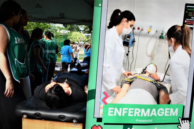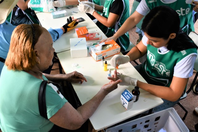 Entre os atendimentos, foram efetivados no local: 136 vacinas contra a Influenza, 190 aferições de pressão arterial, 16 orientações de primeiros socorros, 52 atendimentos de auriculoterapia, 30 orientações nutricionais, 273 testes de tipagem sanguínea, 267 testes de glicemia, além de 60 atendimentos de hidratação facial, 56 massagens e 55 procedimentos de liberação miofascial.