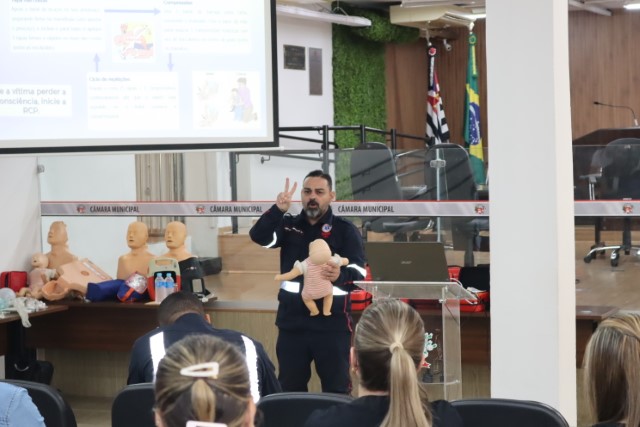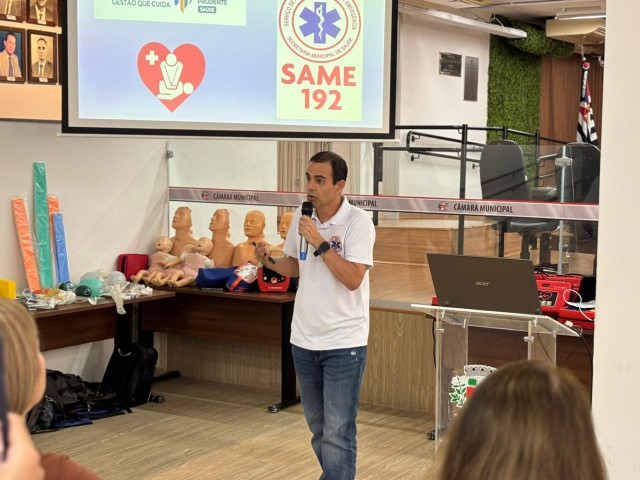 Os profissionais da Sesau, médicos e dentistas, receberam um treinamento sobre o manuseio do DEA e orientações sobre primeiros socorros, que foi ministrado pelo enfermeiro do Same 192, Marco Aurélio Lúcio, e pelo socorrista do Same, Laércio Bianchi.