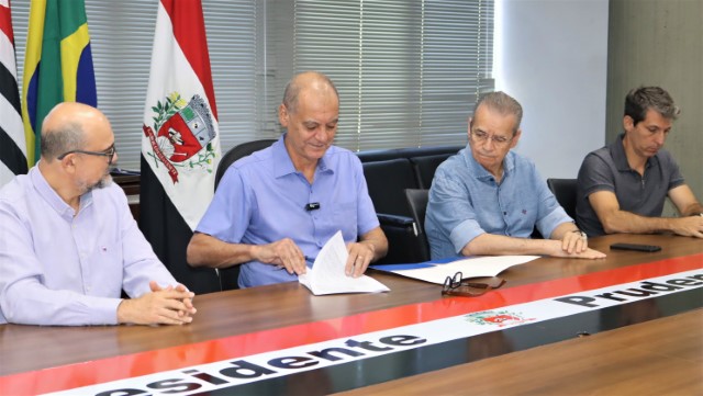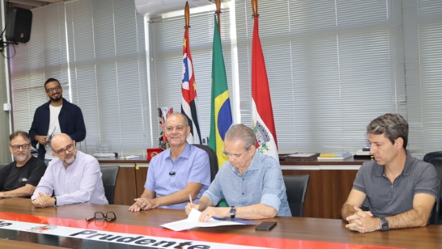 Nesta sexta-feira (17/04), o Prefeito Milton Carlos de Mello - Tupã assinou o termo de parceria entre a Prefeitura de Presidente Prudente e o Sebrae para a instalação de uma unidade do Sebrae Aqui Inovação, na sede da Fundação Inova Prudente. A cerimônia contou com a presença de autoridades, secretários municipais, o gerente regional do Sebrae, José Carlos Cavalcante, e o presidente da Acipp Raul Audi.