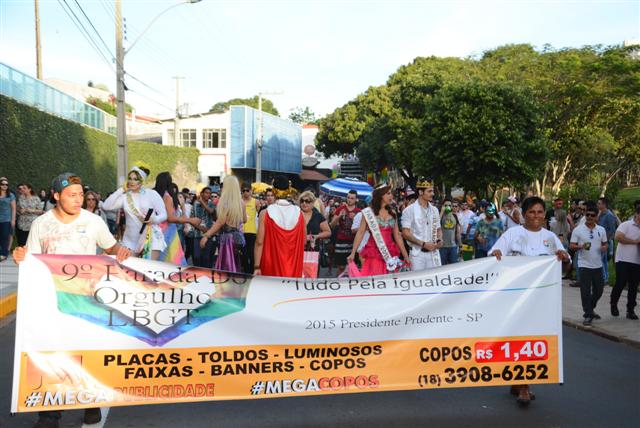 A 9ª edição da Parada do Orgulho LGTB (Lésbicas, Gays, Travestis, Transexuais e Bissexuais) reuniu cerca de 3 mil homossexuais e simpatizantes no Parque do Povo de Presidente Prudente neste domingo (28), segundo informa a Secretaria Municipal de Turismo.