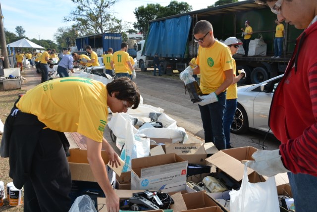 Na logística do mutirão, os carros acionaram o recuo montado na avenida para descarte seu lixo eletrônico, com apoio de 250 voluntários acadêmicos da UNOESTE, que auxiliam na separação do material em bags, com apoio dos funcionários da Secretaria Municipal de Tecnologia (Setec).
