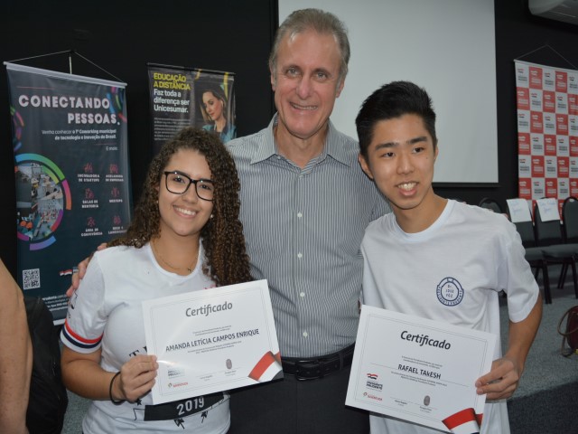 Além de terem a oportunidade de acompanhar in loco a rotina das secretarias e do gabinete do prefeito, os estudantes foram contemplados com uma série de premiações, entre bolsas parciais e integrais de estudos em cursos de graduação da Unicesumar e Fapepe/Universidade Brasil, bolsa integral na escola de inglês Cultura Inglesa e day use para o Terra Park e entradas para o Parque Aquático da Cidade da Criança (veja lista completa dos vencedores abaixo).