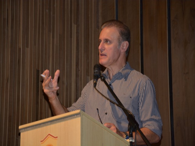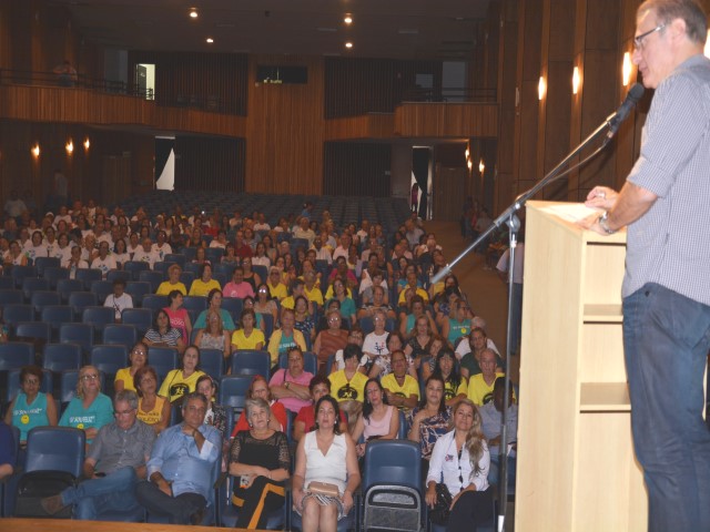 Cumprimentando um a um dos grupos presentes no Fórum, o prefeito Nelson Bugalho disse que tem que ter muito talento para envelhecer, destacando que é o único meio de viver muito tempo.