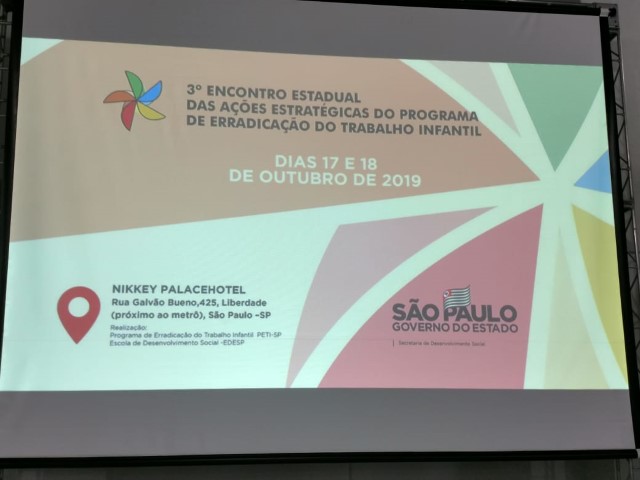 A cidade está representada no 3º Encontro Estadual das Ações Estratégicas do Programa de Erradicação do Trabalho Infantil, que ocorre dias 17 e 18 de outubro em São Paulo.
