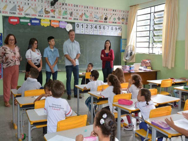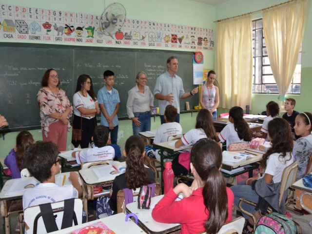 Além de visitar as escolas e ouvir as demandas, o chefe do Executivo, juntamente ao prefeito e vice-prefeita mirins, entregou a premiação do Projeto ‘Boas Práticas Pedagógicas’ à Escola Municipal Giseli Dalefi, cuja iniciativa intitulada ‘Alimentação Saudável’, coordenada pela professora Veruska Zampieri, foi a vencedora na categoria ‘Ensino Fundamental’.