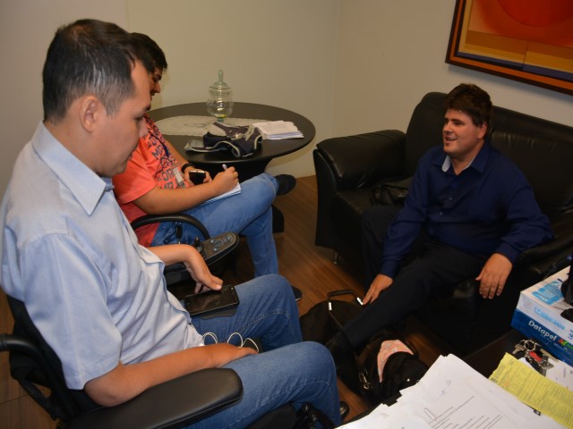 O vice-prefeito Douglas Kato recebeu nesta segunda-feira (06/10), a visita do militante nos Direitos da Pessoa com Deficiência, Daniel Monteiro. Ele, que é deficiente visual e um dos pioneiros a utilizar cão guia no Brasil (obteve o registro em 2005 nos Estados Unidos), esteve acompanhado de sua cadela Angel, sete anos, da raça labrador.