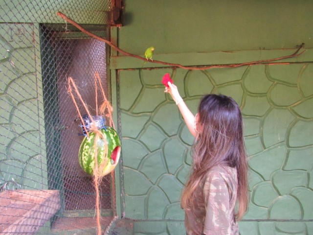 As aves foram retiradas do ninho ainda filhotes, a Polícia Ambiental realizou a apreensão e destinou ao zoológico, onde cresceram sob os cuidados humanos. “É uma espécie comum em nossa região, porém os exemplares não podem voltar à natureza, já que não possuem hábitos selvagens como busca pelo alimento ou fuga de predadores. Se realizássemos a soltura, muito provavelmente, não sobreviveriam”, conta a bióloga Isabela Alves de Lima Sakita.