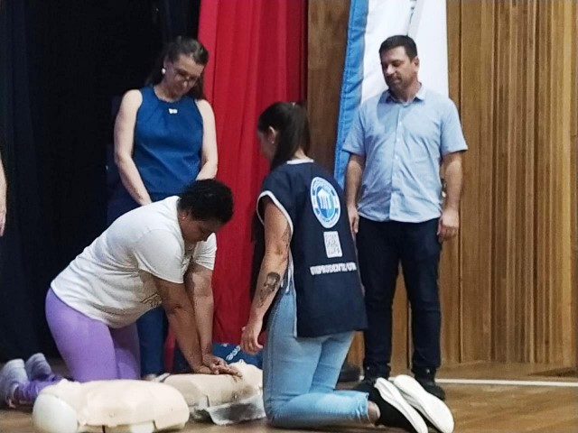 Já o curso de Primeiros Socorros foi ministrado pelo funcionário do Same, Laércio Bianchi, onde foram abordados assuntos pertinentes a ocorrências que tem necessidade de primeiros socorros, formas de atuação para cada tipo de ocorrência ou intercorrências, como engasgos, crises convulsivas, paradas cardiorrespiratórias e como agir enquanto aguarda a chegada do socorro.