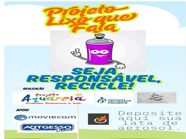 O Serviço de Convivência e Fortalecimento de Vínculos - Projeto Aquarela, a Secretaria Municipal de Meio Ambiente de Presidente Prudente (Semea) e o artista e professor, Itamar Xavier, anunciam o Projeto ‘Lixo Que Fala’, que tem como objetivo arrecadar latas de aerossóis.