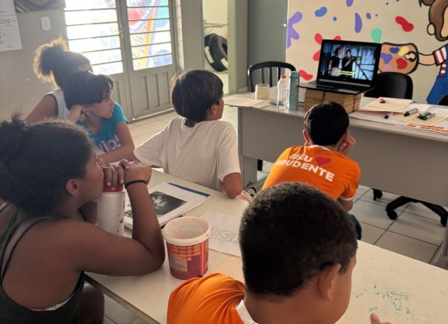 O professor explica que parte dos aerossóis arrecadados também será utilizado para um trabalho de arte com os alunos das oficinas do Projeto Aquarela, na a construção de um mosaico.