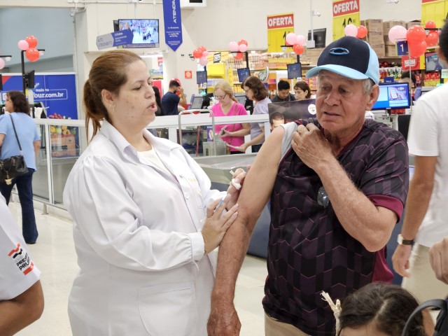 A Prefeitura de Presidente Prudente, por meio da Secretaria Municipal de Saúde (Sesau), promoveu neste sábado (10/05) uma ação itinerante de vacinação contra a Influenza para pessoas do grupo prioritário, que percorreu os principais supermercados da cidade.