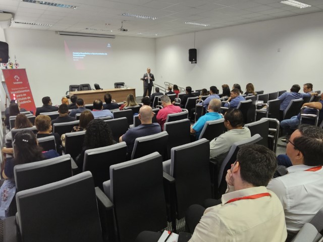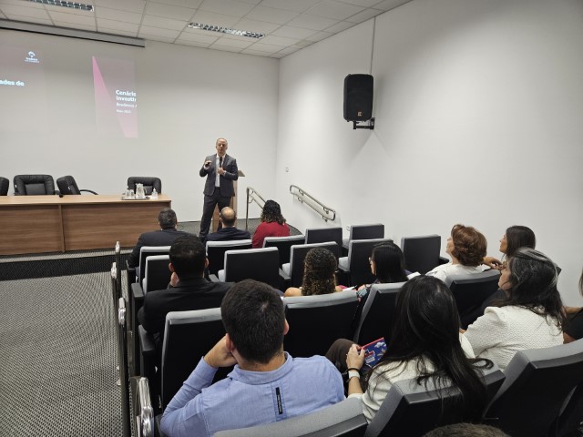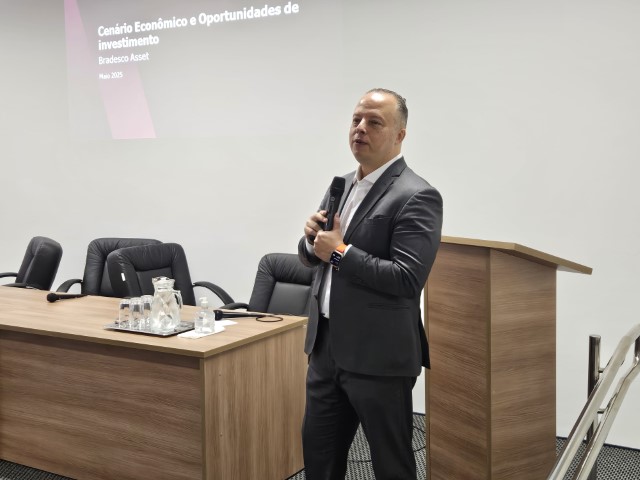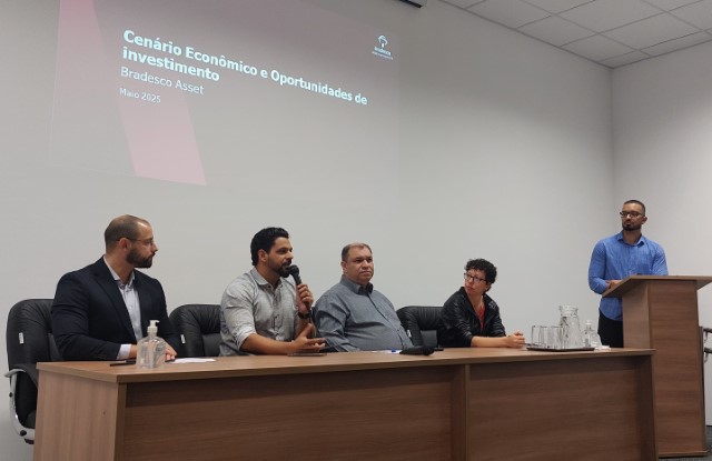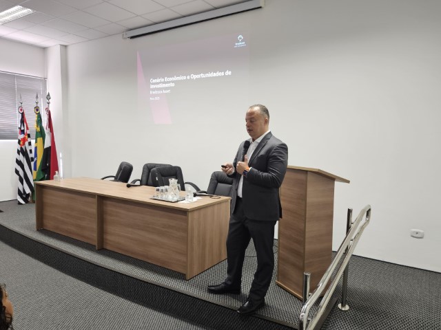 O evento contou com presença do especialista em Portfolio da Bradesco Asset, Cristiano Picollo, que conduziu um bate-papo sobre as perspectivas econômicas e estratégias voltadas aos Regimes Próprios de Previdência Social.
