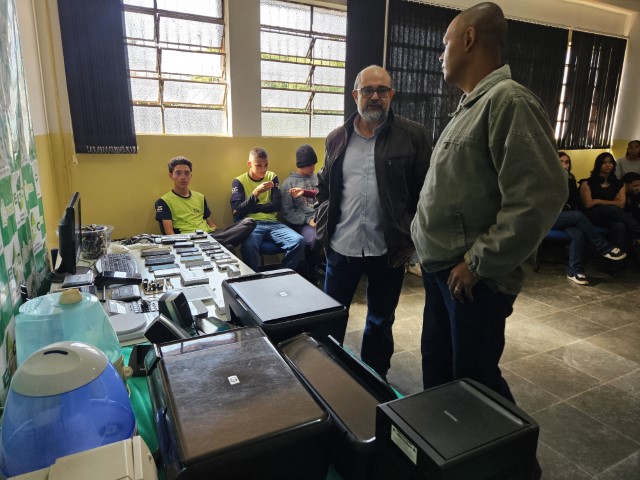 A poucos dias de mais uma edição do Mutirão do Lixo Eletrônico, o secretário municipal de Tecnologia, Helton Sapia, esteve na ETEC Antônio Eufrásio de Toledo, onde recebeu dos alunos o descarte de cerca de 200 itens eletrônicos, recolhidos por cerca de 30 estudantes.