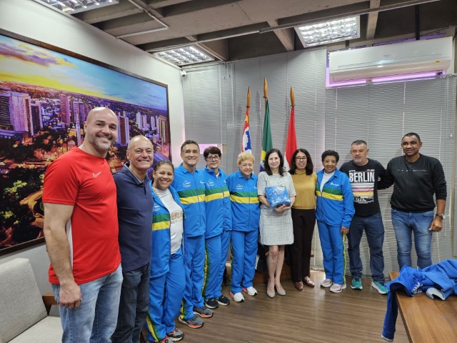 Parte das equipes da Melhor Idade compareceram à solenidade, realizada na tarde desta sexta-feira (27) no Gabinete do Paço Municipal “Florivaldo Leal”. Além do sorriso no rosto, o time também ostentava o novo agasalho do Time Prudente, confeccionado nas cores da identidade visual da gestão Milton Carlos de Mello – Tupã (Azul, verde e amarelo) e com as logos do governo e do MPT no peito.