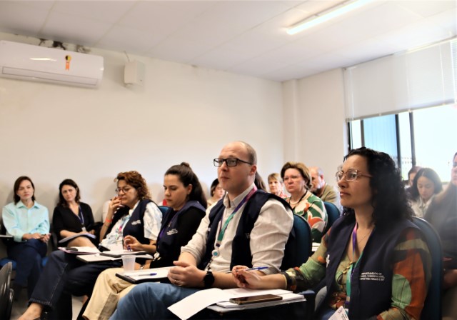 A Equipe Nacional de Validação, composta pelos profissionais Márcia Colombo - Coordenação e Eixo Direitos Humanos; Rayane Martins da Silva - Eixo Diagnóstico; Fábia Lisboa de Souza - Eixo Vigilância; Rodrigo Groisman Sieben - Eixo Programas e Serviços, se apresentaram e comentaram sobre seus papéis diante das certificações que realizam Brasil afora.