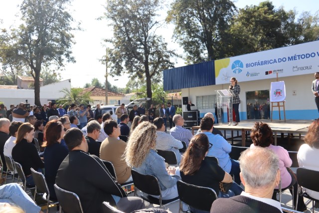 Gestora de projetos do Método Wolbachia, representante da WMP Brasil, Ana Carolina Rabello foi a primeira a subir ao palco. "A inauguração da Biofábrica é um resultado de um esforço em conjunto entre a Prefeitura de Presidente Prudente, o Governo do Estado de São Paulo a Fiocruz e Mistério da Saúde, uma união de esforços que proporcionou a chegada desse dia de hoje, que é muito importante para todos."