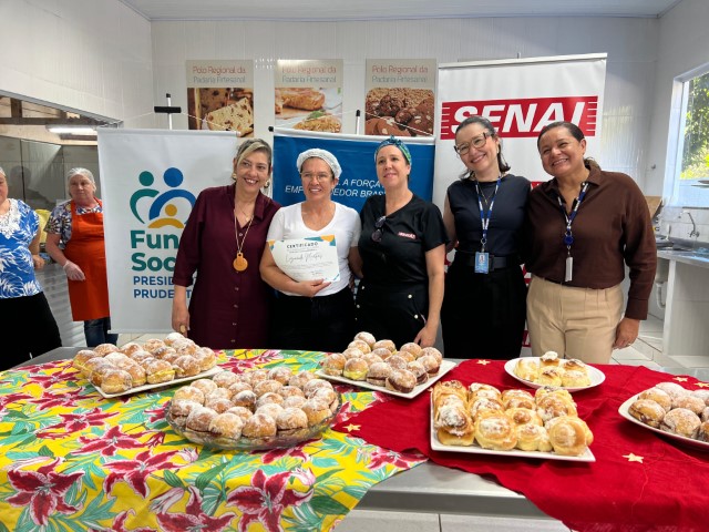 Mais uma turma de alunos do Fundo Social de Presidente Prudente concluiu o curso de produção de pães doces e semidoces, em uma parceria com o Sebrae-SP. Ao todo, 9 dos 11 participantes da capacitação compareceram à tarde de formatura, realizada na cozinha industrial do Fundo.
