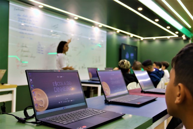 A carreta, estacionada nas dependências do Centro Olímpico, recebeu estudantes dos 4º e 5º anos e da EJA (Educação de Jovens e Adultos), que tiveram aulas de 60 minutos, interativas e cada aluno com um notebook e recursos online, como simuladores financeiros, vídeos e artigos que enriquecem o aprendizado.
