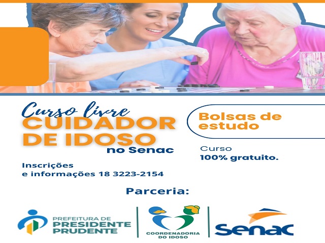 A Prefeitura de Presidente Prudente, por meio da Coordenadoria Municipal do Idoso, iniciou hoje (11/08) um novo curso livre profissionalizante de “Cuidador do Idoso”, em parceria com o Senac. Foram preenchidas as 35 vagas disponíveis, e há também uma lista de espera. A abertura contou com a presença da secretária de Assistência Social, Ariane Jacintho, e o coordenador municipal do Idoso, Caio Marcelo Neves Damato.