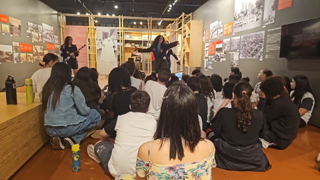 Antes de assistir ao espetáculo, os alunos da Escola Municipal Rotariano Zacarias participaram de uma visita guiada ao MAH, coordenada pela diretora Valentina Romeiro, acompanhados pelas professoras Cícera Patrícia e Marines Ribeiro Moraes.