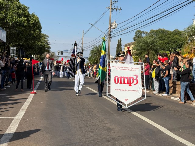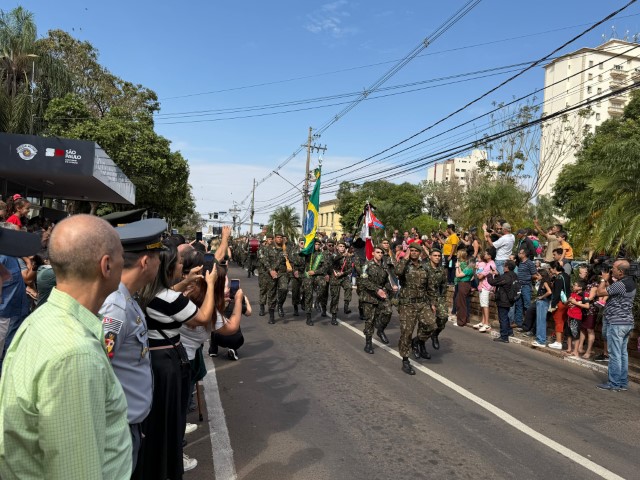 Após seis anos sem ser realizado, o Desfile Cívico Militar de 7 de Setembro voltou a acontecer em Presidente Prudente na manhã deste domingo (7), reunindo mais de 4 mil pessoas na Avenida Coronel José Soares Marcondes, em frente à Praça 9 de Julho.