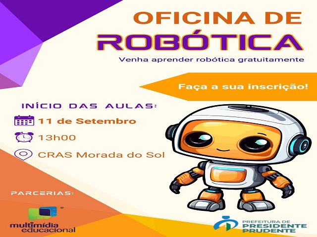 A Secretaria Municipal de Assistência Social (SAS) de Presidente Prudente oferecerá uma Oficina de Robótica gratuita, para crianças e adolescentes com idade entre 10 e 17 anos, residentes no território do CRAS Morada do Sol.