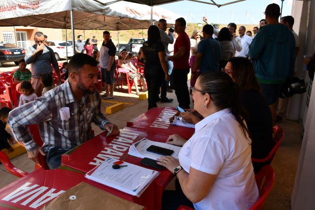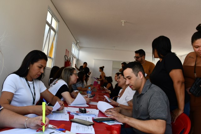 Para a assinatura dos contratos, as famílias contempladas foram previamente agendadas e organizadas em grupos de aproximadamente 30 pessoas por horário, garantindo agilidade no atendimento.