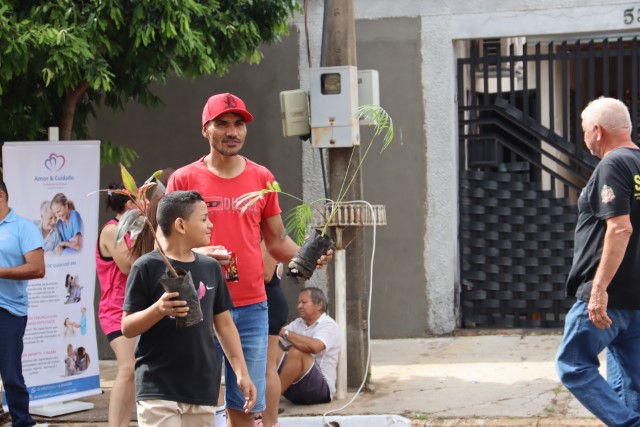 A Semea (Secretaria Municipal de Meio Ambiente) distribuiu todas as 90 mudas que levaram: Palmeira Areca, Dracena e Ipês.