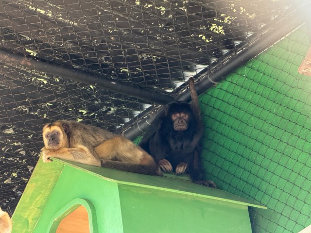Para fazer companhia à Margarida, o bugio-preto Rocão foi transferido do zoológico de Garça, em julho deste ano. A adaptação foi um sucesso, e os dois se tornaram inseparáveis.